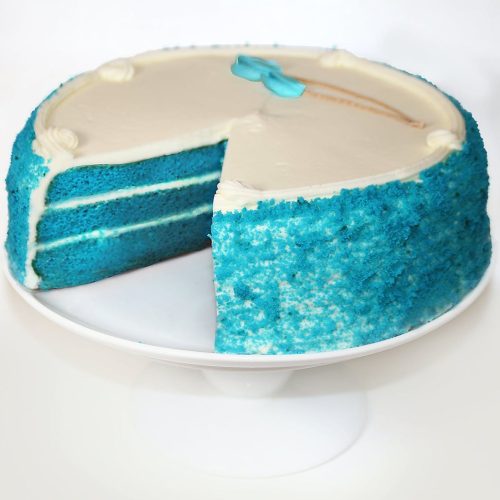 This cake has all the awesomeness of Carousel Cake’s delicious red velvet cake with a blue color splash.