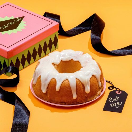 It’s made without any preservatives or fillers and comes packaged in Jane’s Cakes’ signature yellow and white striped box – with a ribbon of course.